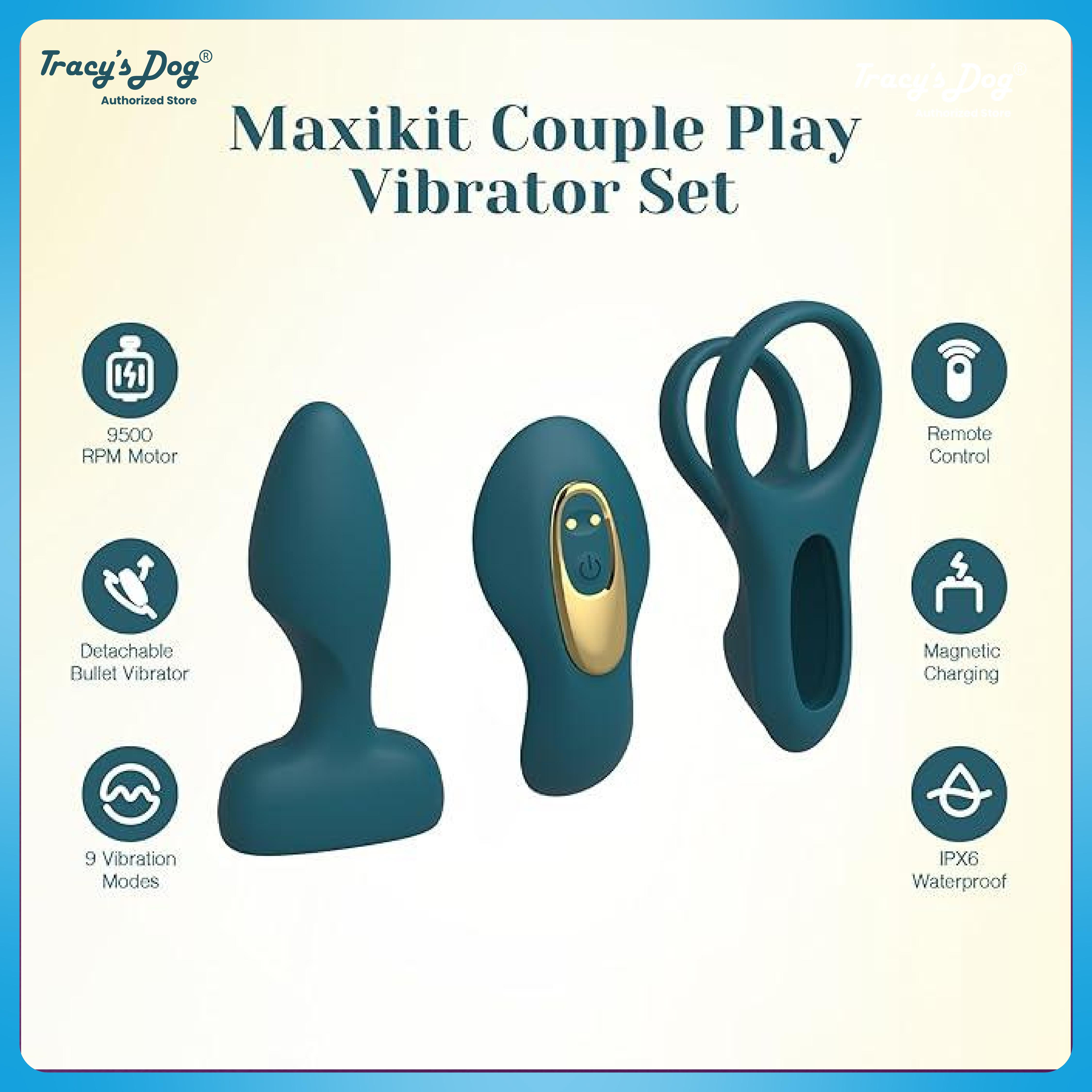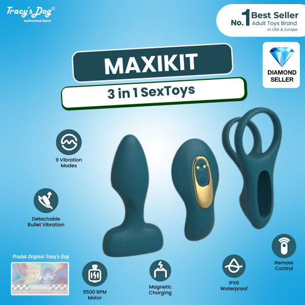 Maxikit Vibe Set menawarkan tiga mainan dewasa yang bergetar untuk meningkatkan momen intim kamu dengan pasangan nih temen - temen. Product Maxikit ini sudah 3 in 1, cocok banget untuk menemani malam kencan. alat ini memberikan orgasme yang kuat dan menyeluruh serta memperpanjang foreplay untuk kenikmatan sepanjang malam. Yuk coba sensasi baru dengan trio Alat dari TracysDog ini.Terdapat:1 Couple Ring Sleeve1 Detachable Vibrating Bullet1 Wearable Panty Sleeve1 Anal Plug SleeveSpesifikasi :6 Vibration Modes3 Intensities Vibration9500 RPM Powerful MotorFor Solo or CoupleWireless ControlWaterproof IPX6Flexible siliconeSize:Anal Plug (4.22x2.2x1.3 inch)Cock Ring (4.5x2x1.57 inch)Wearable Panty (3.66X1.8X1.3 inch)Desain ergonomis dan elastis untuk mencapai zona stimulasiSilikon product yang sangat aman aman untuk tubuh, product tahan air, dan tidak berbauUSB Charging dengan fitur fast chargingMaterial: Ultra Smooth Premium Silicone, ABSCharging type: Magnetic USB RechargeableFull Charging time: 1 hours, Duration Using time: >40 minutes